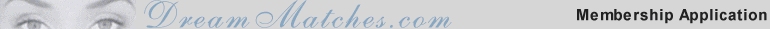 Enter the following private information for your account on the system. This information (except UserID) will only be seen by the DreamMatches staff.