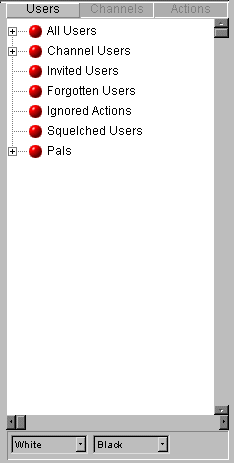 Lists all users you have made Pals. When Pal users type in a message, the message displays in the Whispers/Pals Message Window. |